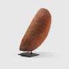carved wood and natural earth pigments, of elongated concave form, the exterior with stone cut engraving and scouring, red ochre wash, raised on a bespoke mount