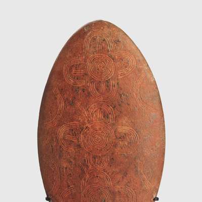 The word ‘Tjurunga’ derives from the Arrernte word Tywerenge, which means ‘sacred’ or ‘precious’. They were the ancestors' most treasured possessions, with myths emphasising their magical properties. Each person was believed to have been a reincarnated ‘ancestral’ spirit being, their essential sacred essence expressed in the physical tjurunga form. During initiation, a youth received his own tjurunga and was gradually introduced by tribal elders to the secret knowledge concerning their own and other tjurunga, the ritual practices and belief systems passed down from one generation to the next. The intricate designs, engraved using possum teeth, recorded legends, with the various symbols serving to remind the reciter of the narrative. The markers have hundreds of different meanings, with the number of conventionalised symbols making up a very small proportion. The sacred nature of the tjurnuga meant that they could only be seen by initiated men during times of ceremony, with women and children strictly banned from laying eyes on them. Although tjurunga exist across Australia, the finest decorated stone examples come from Central Australia.