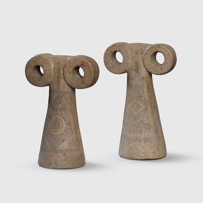 Though separated by vast distances and thousands of years, the Sabaean votive plaque of ancient South Arabia (lot 110), the Mesopotamian eye idols (lot 109), and the Aboriginal Australian churinga (lot 107) share a common purpose. Each acts as a bridge between the human and the spiritual- linking people, place, and belief through lasting acts of memory and devotion.