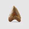 a fine Otodus megalodon tooth, cream coloured, bearing fine serrations