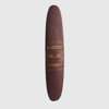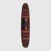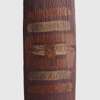 carved wood and pigment, of elliptical form, the obverse engraved with fluting and displaying a centre painted motif in cream and orange pigment, the reverse with fluting and an integral handle, raised on a bespoke mount designed for wall installation