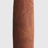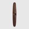 carved wood and natural earth pigments, elongated oval shield, the obverse decorated with red ochre, vertical fluting and incised diagonal striations arranged in broad bands, the reverse with square and line engraving and unadorned with red ochre, accompanied by a bracket for wall mounting