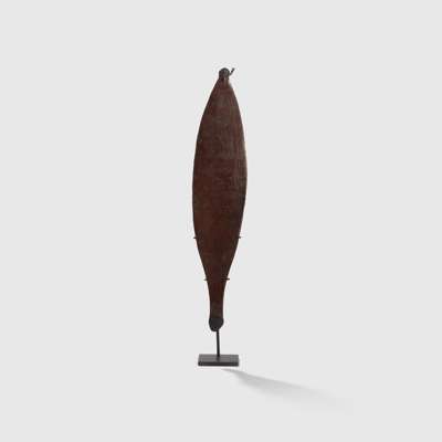 Aboriginal communities throughout Australia traditionally utilised spear throwers for both hunting and combat. To use the device, the handle at its lower end was gripped while a small, hooklike extension at the upper end engaged with the hollow base of a long, lightweight spear. This tool functioned by effectively extending the user’s arm, providing a mechanical advantage that boosted the spear’s speed and throwing range. While spear throwers could allow a hunter or warrior to strike a target from up to eighty yards away, users typically aimed to get as close as possible to maximise the force and precision of their throw.