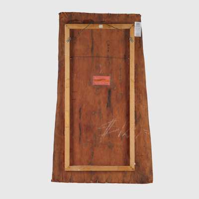 Murrumurru’s work is celebrated for its fidelity to the rock art heritage of his homeland. While many of his contemporaries adopted new influences, he remained devoted to traditional forms and ceremonial imagery. His paintings on eucalyptus bark are executed with natural ochres, often set against a rich red ground that heightens the brightness of the white and yellow figures.