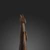carved wood, a tall attenuated sculpture of a wallaby, depicted in an abstracted manner, the elongated body tapering smoothly into simplified limbs, with the head retaining an almost totemic expression, raised on a bespoke mount