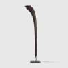 carved wood and metal, the long club broadening towards the head and tapering to a sharp point, the surface fluted along its length, the handle scoured for grip, the head slanting off to the side and inset with seven rows of nails, mounted on a bespoke stand