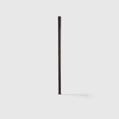carved wood, of bold, linear form, decorated with geometric carvings evoking the wrapping of a textile, raised on a bespoke mount