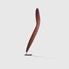 carved wood and natural earth pigments, of elongated and sinuous form with a gently curving profile, both the obverse and reverse adorned with incised overlapping linear motifs, raised on a bespoke mount