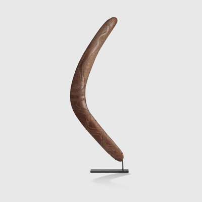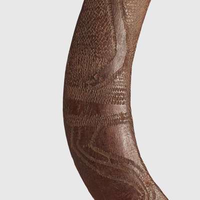 carved wood, of typical curved and tapering form, adorned with a depiction of a snake, raised on a bespoke mount