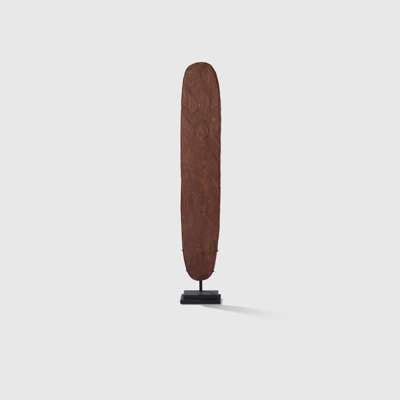 carved wood, adorned with a series of parallel and intersecting linear designs forming a repeating lozenge and zigzag pattern, raised on a bespoke mount