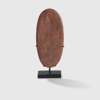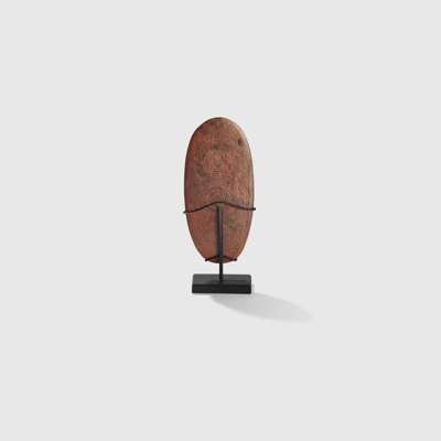 stone, worked incisions with three concentric circle details on each side of the flat, oval surface; raised on a bespoke mount