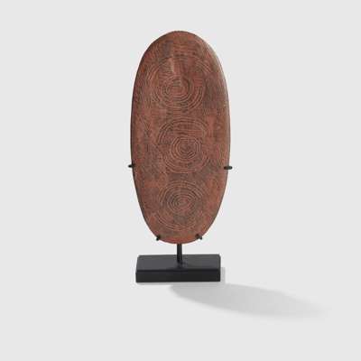 The word ‘Tjurunga’ derives from the Arrernte word Tywerenge, which means ‘sacred’ or ‘precious’. They were the ancestors' most treasured possessions, with myths emphasising their magical properties. Each person was believed to have been a reincarnated ‘ancestral’ spirit being, their essential sacred essence expressed in the physical tjurunga form. During initiation, a youth received his own tjurunga and was gradually introduced by tribal elders to the secret knowledge concerning their own and other tjurunga, the ritual practices and belief systems passed down from one generation to the next. The intricate designs, engraved using possum teeth, recorded legends, with the various symbols serving to remind the reciter of the narrative. The markers have hundreds of different meanings, with the number of conventionalised symbols making up a very small proportion. The sacred nature of the tjurnuga meant that they could only be seen by initiated men during times of ceremony, with women and children strictly banned from laying eyes on them. Although tjurunga exist across Australia, the finest decorated stone examples come from Central Australia.