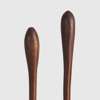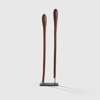 carved wood, each with rounded bulbous striking head tapering to a narrow handle, one with fluting to head, the other with scouring, raised together on a single bespoke mount