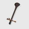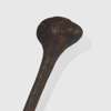 ground stone head, securely attached to a single piece wooden shaft and casing above the head, with a label reading: