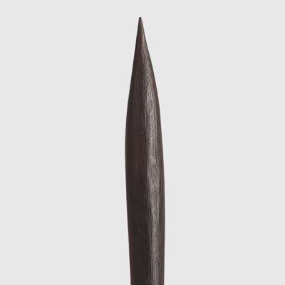 carved wood, with club head worked to a point and roughened carved surface indicating the handle, fine vertical fluting throughout, raised on a bespoke mount