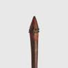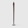 carved wood, pigment and metal, the long club broadening towards the head and tapering to a sharp point, the surface fluted along its length, the handle scoured for grip, the head set with two rows of nails and displaying traces of red pigment, raised on a bespoke mount