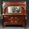 the mirrored superstructure with cornucopia curved spandrels, the rectangular top above two central drawers flanked by cupboard doors and scrolled channelled supports