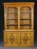 the bead and reel moulded cornice above two glazed doors, enclosing shelves, flanked by carved and fluted columns, the projecting base with two panelled cupboard doors, on plinth base