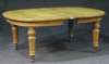 with moulded D-end on turned and fluted legs with brass caps and castors and two further leaves