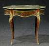 with patterned top, brass moulded serpentine edge with single drawer freeze on cabriole legs, on brass claw feet