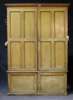 the moulded cornice over quarter panelled door, with pigeon holes inside over squat cupboard, base on plinth