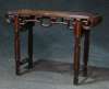 with scroll top over open fretwork panels and shaped legs united by two stretchers