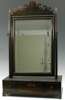 the rectangular moulded frame with later bevelled plate and scroll cresting, on a rectangular base with three drawers on bracket feet, 43.5cm wide; and another toilet mirror, 56cm wide (2)