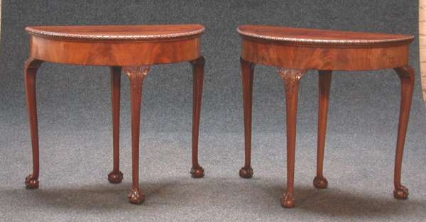 A pair of reproduction mahogany demi-lune side tables,