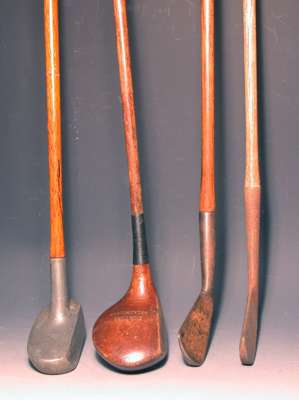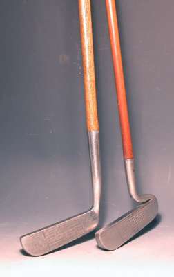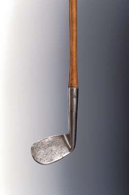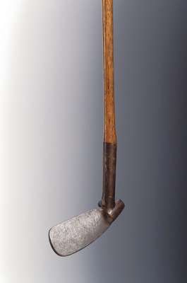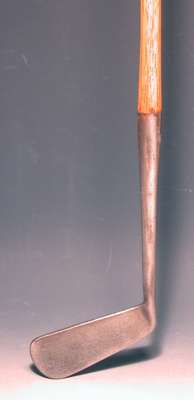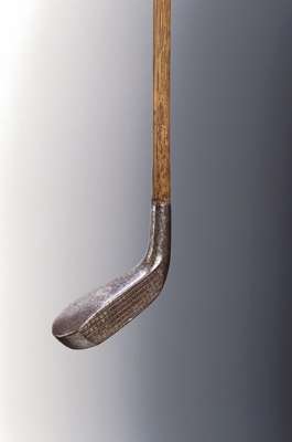A silver golf club, formed as a replica of a McEwan, Edinburgh, long nose play club,
