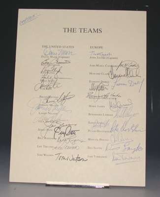 A 1981 Ryder Cup Dinner menu card,