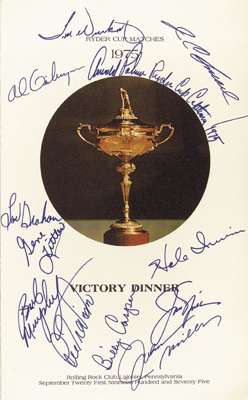A 1975 Ryder Cup Victory Dinner Menu card