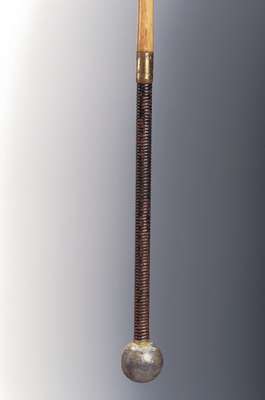 with leaded brass ball head, hickory shaft, wrapped smooth leather grip