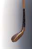 the scared head stamped with maker's name, horn insert to sole and lead backweight, hickory shaft, replacement wrapped leather grip