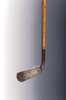 the head 5 3/4 ins (14cm) wide, part-hatched face, stamped key and other trademarks to the reverse, hickory shaft, replacement wrapped leather grip