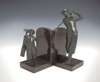 A pair of green patinated bronze bookends,