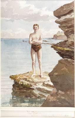 a portrait of Freddie Tait, pencil and watercolour, inscribed in the margin