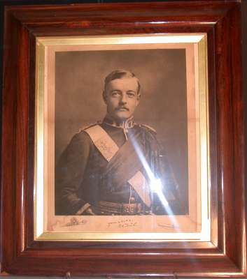 an original 1896 photogravure showing Freddie Tait in a Black Watch uniform, with Tait's signature to the bottom margin, along with vignettes, in a glazed oak frame