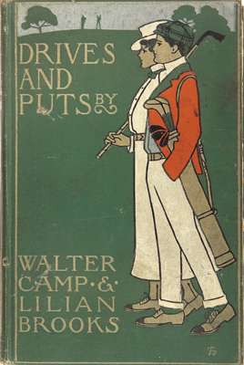 Drives and Puts: A Book of Golf Stories... 1st edition, frontispiece of a woman golfer by H.c. Ireland, tissue-guard, pictorial green cloth depicting a man and woman strolling on a green, holding golf clubs, t.e.g., L. C. Page, Boston,1899