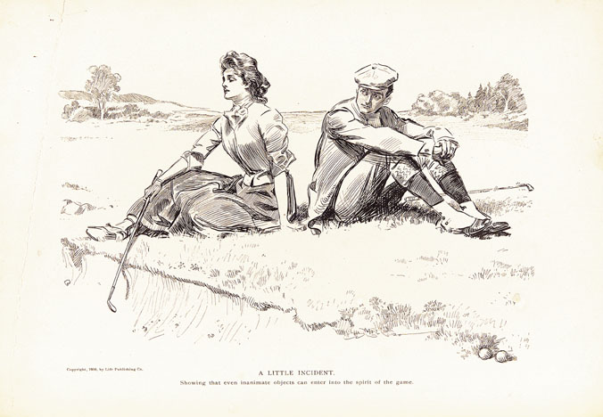 Fore! Life's Book for Golfers... 1st edition, illustrated throughout, green cloth-backed pictorial boards with cover design of an enthusiastic female golfer, in the style of Charles Dana Gibson, t.e.g., Life Publishing, New York, 1900