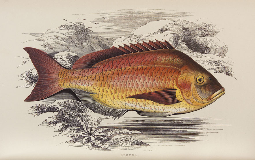 A history of the fishes of the British Islands ... 1st edition, 4 volumes, illus., 252 coloured plates, contemporary blue calf, rubbed and stained, lower joint of vol. 4 cracked, some pages in vol. 4 discoloured, 8vo., London: Groombridge & Sons, 1862-65