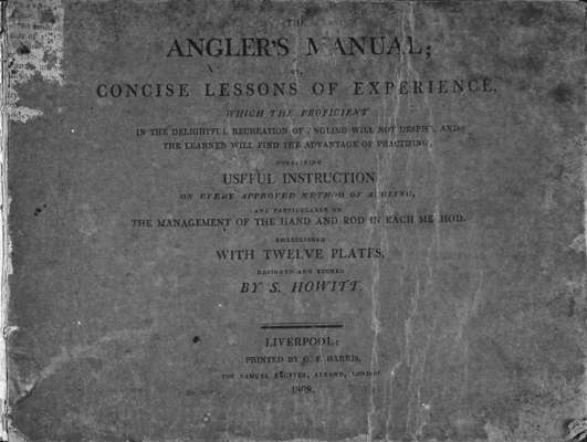 The angler's manual: or, concise lessons of experience ... containing useful instruction on every approved method of angling, and particularly on the management of the hand and rod in each method ... 1st edition, 12 engraved plates, original printed paper boards, backstrip perished, boards worn, slight paper discolouration and some spotting throughout, oblong 8vo., Liverpool: Bagster, 1808