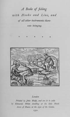 A booke of fishing with hooke and line ... reprinted from the edition of 1590; with preface and glossary by Thomas Satchell ... Illus., quarter morocco, cloth boards, endpapers a little foxed, small 4to., London: Simpkin, Marshall for W. Satchell & Co., 1884