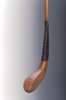 the scared head with horn insert to sole, lead counterweight, hickory shaft, wrapped leather grip