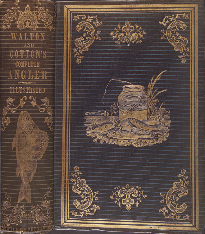 The complete angler ... A bibliographical preface, giving an account of fishing and fishing-books, from the earliest antiquity to the time of Walton, and a notice of Cotton and his writings by the American editor [i.e. George W. Bethune] to which is added an appendix, including illustrative ballads, music, papers on American fishing, and the most complete catalogue of books on angling etc., ever printed ... 1st American edition, 2 parts in 1 volume, illus., 2 port. plates and 2 other engraved plates, publisher's pictorial cloth, gilt, a.e.g., slight snagging to head and tail of spine, some foxing throughout and particularly of the prelims., 8vo., New York: Wiley & Putnam, 1847