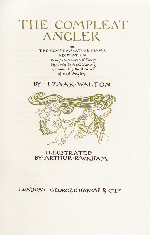 The compleat angler ... Illustrated by Arthur Rackham ... 1st thus, col. frontis., illus., 11 col. plates, original vellum, t.e.g., others uncut, original numbered slip case with printed paper label, binding lightly spotted, 4to., London: Harrap, 1931