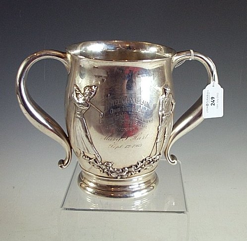 with engraved panel 'Hotel Champlain' Open Handicap Ladies Golf Tournament Best Gross Score' won by Mary J. Hart, Sept 12. 1903