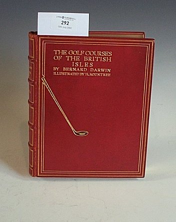 1st edition, col. frontis and 64 plates (including col.), by Harry Rountree, full red morocco, gilt panelled, the upper board lettered in gilt and with gilt and inlaid brown morocco golf club , raised bands, a.e.g., by Bumpus, small 4to., London: Duckworth, London 1910