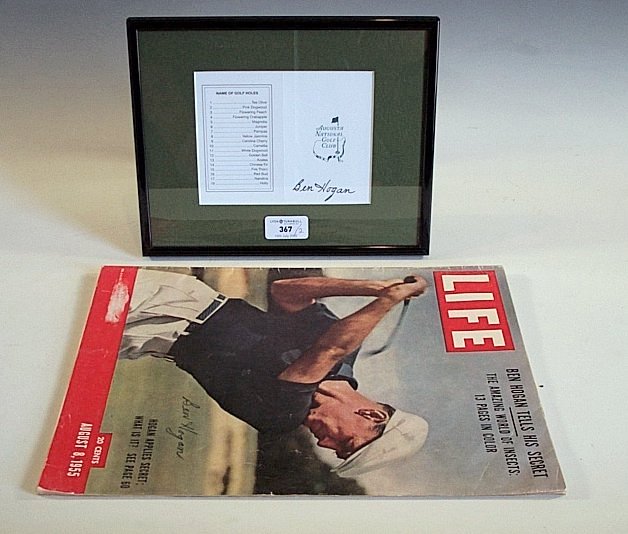 August 8, 1955, autographed by Ben Hogan, and an Augusta National Golf Club score card, autographed by Ben Hogan, framed and glazed (2)