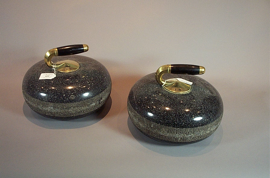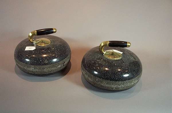 A pair of grey granite curling stones