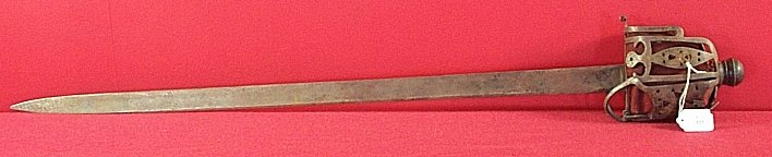 stamped 1HB (1st Highland Battalion 1757) with spurious single edged blade signed Andria Farara, the grip coverd in leather with buff leather liner covered with red felt, the pommel a replacement